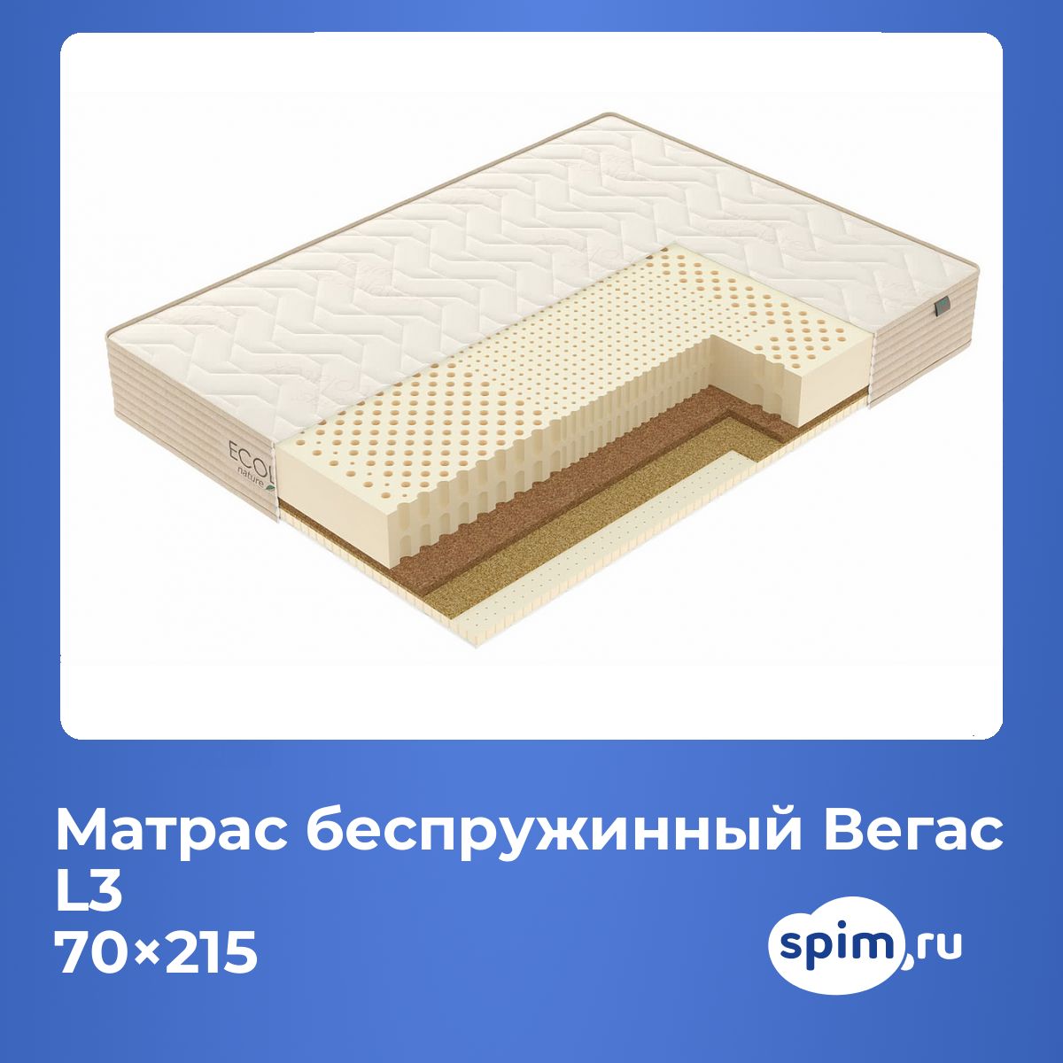 Кокос — натуральный материал, койра отлично дышит, придает матрасу «L3» жесткость и упругость.
