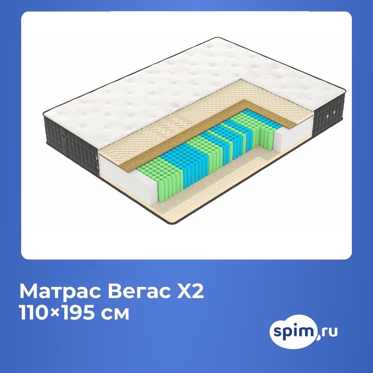 Полутораспальный матрас Вегас X2 110х195 подойдет для кроватей с размерами спального места, обозначенными как 110x195 см, 1100х1950 мм, 195х110 см, 1950х1100 мм (ширина 110 см, длина 195 см).